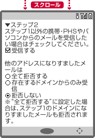 携帯電話・PHSドメインになりすましたメールを拒否する場合は、ステップ1で設定します。