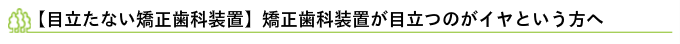 歯並びをキレイにしたいけど装置が目立つのがイヤだ、と矯正歯科治療をためらっている方は多いのではないでしょうか。このページでは、透明や目立たない色の矯正歯科装置や、表側から見えない(歯の裏側に付ける)矯正歯科装置や、透明なマウスピース矯正歯科装置についてご紹介します。