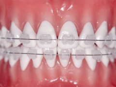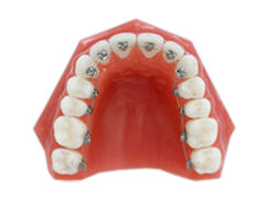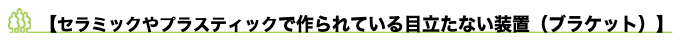 この装置は"セラミックブラケット"や"コンポジットレジンブラケット"とよばれ、歯に装着するパーツが白いセラミック(陶器)やコンポジットレジンでできているため、歯とよくなじみ、目立ちにくいのが特徴です。