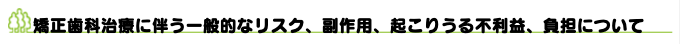 - 矯正歯科装置を外す時に、エナメル質に微小な亀裂が入る可能性や、かぶせ物(補綴物)の一部が破損する可能性があります。
